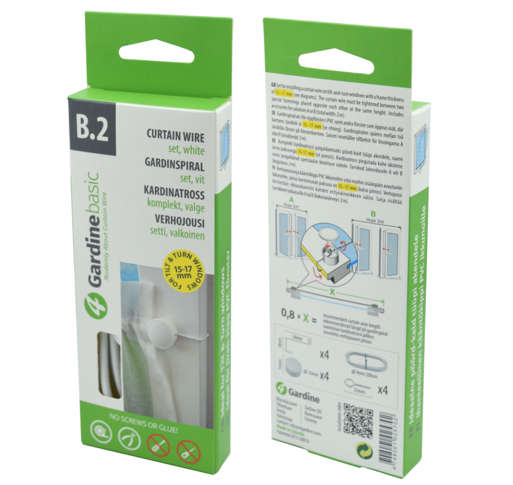 – Paigaldamine ei vaja kruve ega liimi, järgides kardinatrossi pikkusesse lõikamisel meie soovitusi.