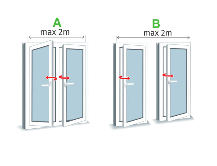 – Ideaalne kahe avatava poole ja keskpostiga aknaraamile ( A ) või kahele ühe avaga aknaraamile ( B ) kogulaiusega kuni 2 meetrit.