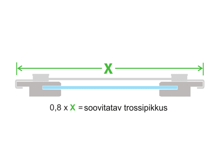 – Mõõda aknaraami laius ning lõika kardinatross vastavalt meie soovitustele sobivasse mõõtu ( vt joonist )