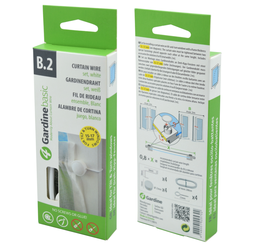 – Kit à clips pour câble à rideaux – posez vos rideaux simplement et en toute sécurité, sans abîmer le cadre de fenêtre!